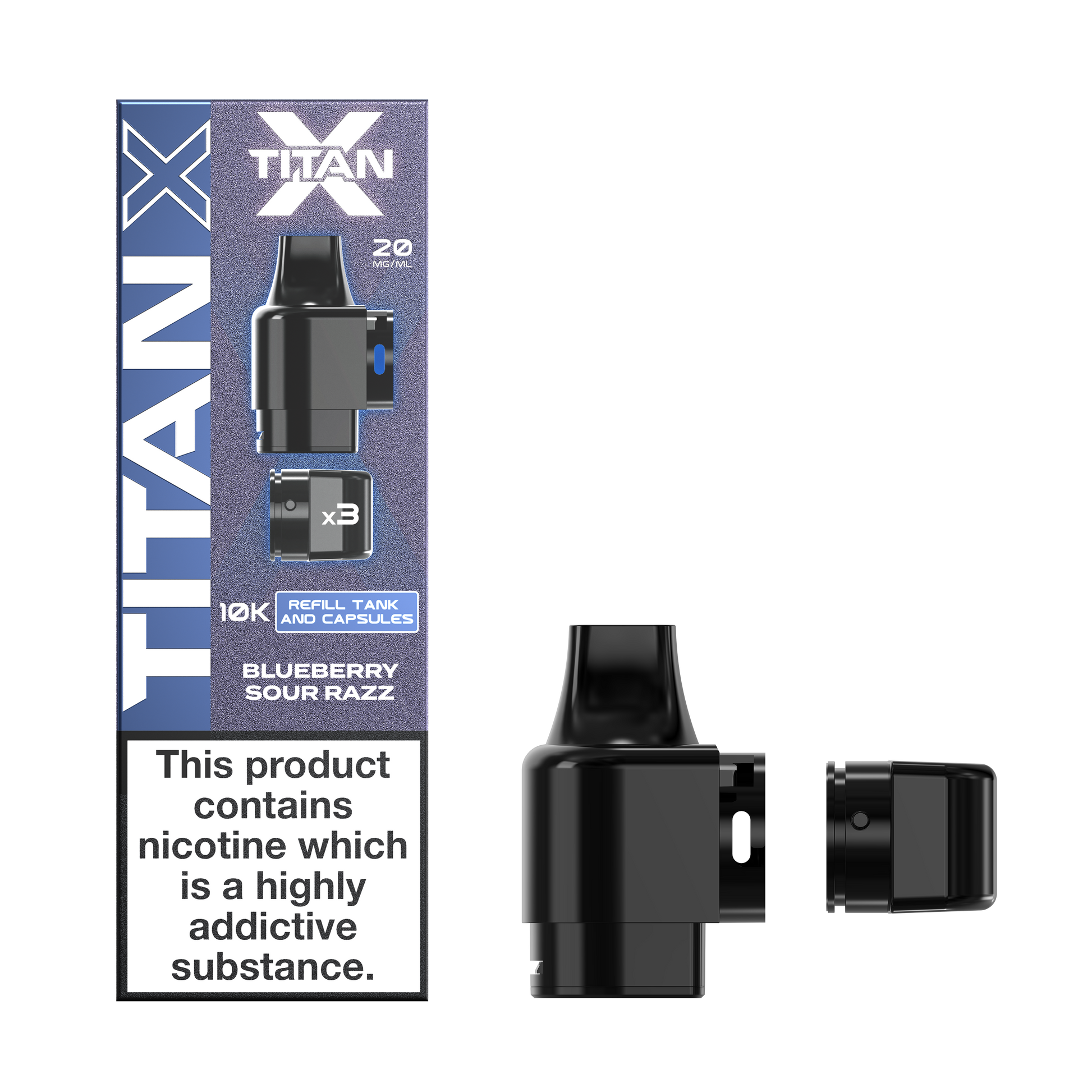 Enjoy the bold, tangy freshness of Blueberry Sour Razz – Titan X Pod.
