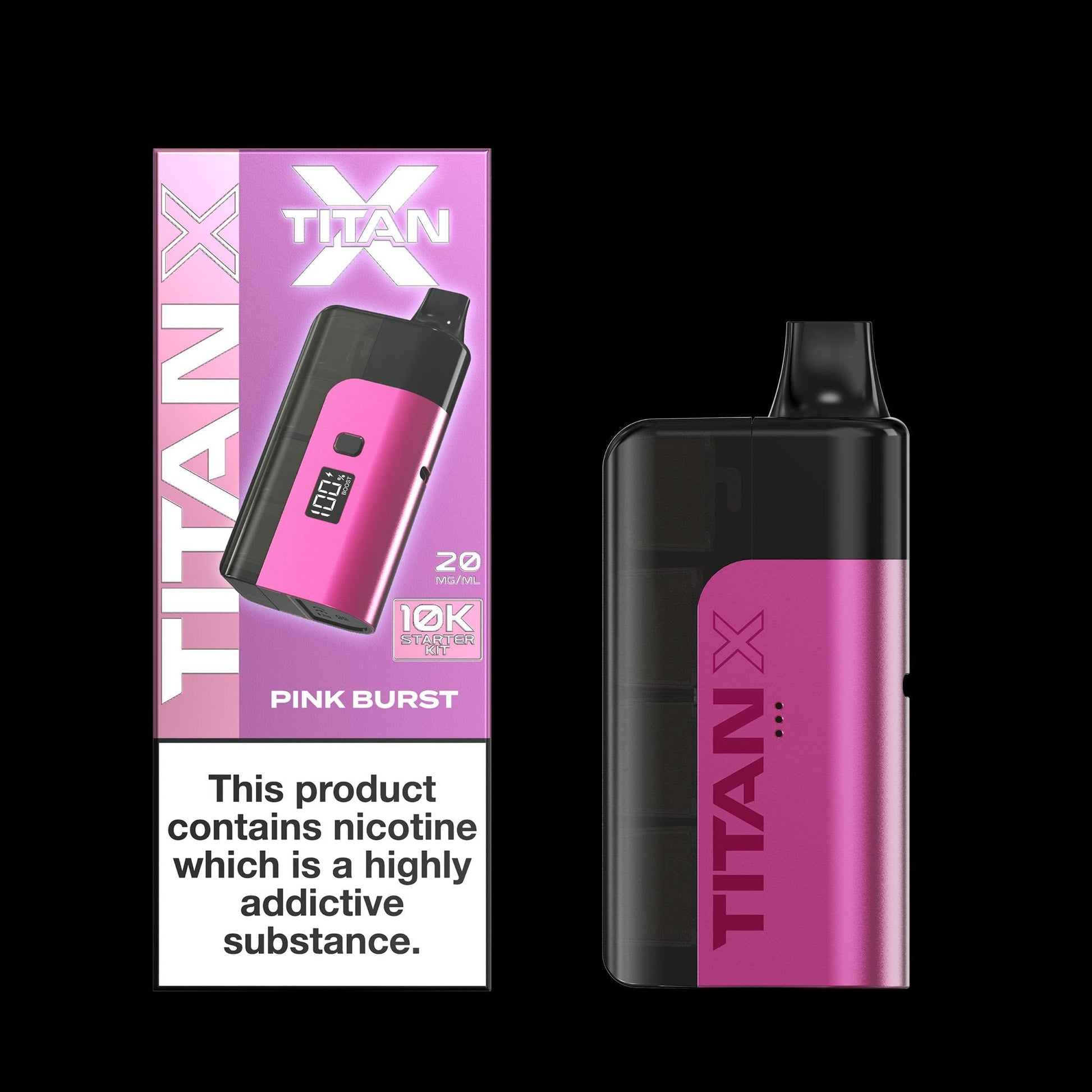 Experience the juicy vibrancy of Pink Burst – TITAN X Kit, a flavour that keeps you coming back for more.